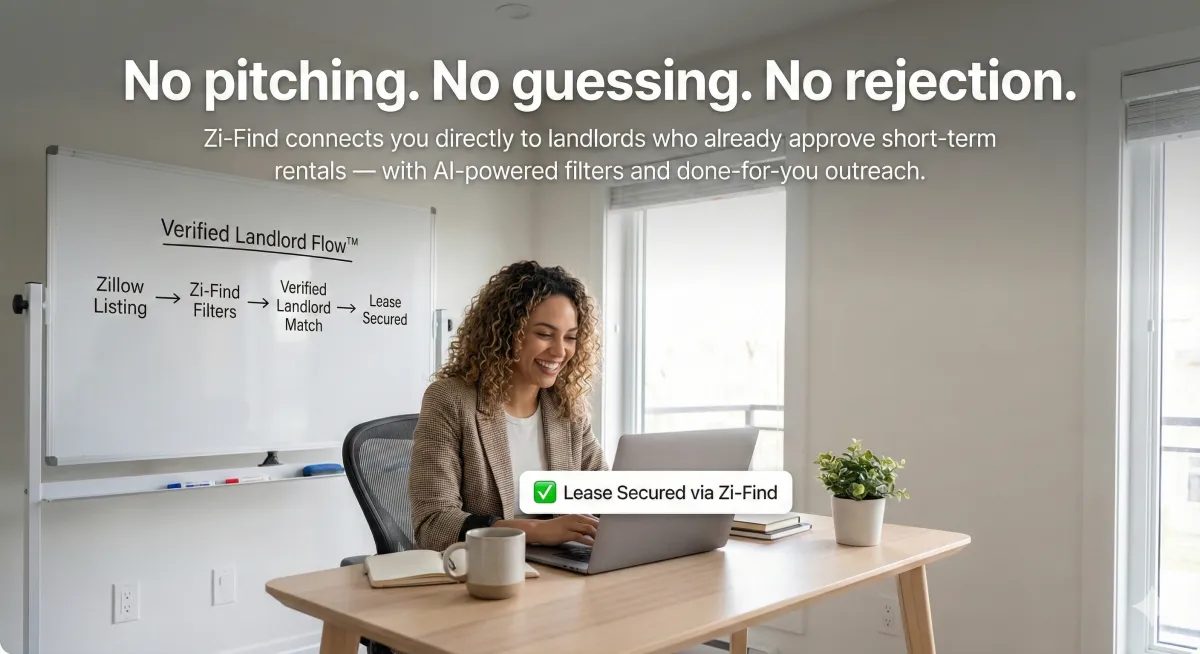 Rather than wasting hours messaging listings on Zillow, hoping someone says “yes,” Zi-Find puts you directly in front of landlords who are ready to work with short-term rental operators. Every listing is curated, verified, and matched with your exact criteria, including rent range, location, and lease flexibility.