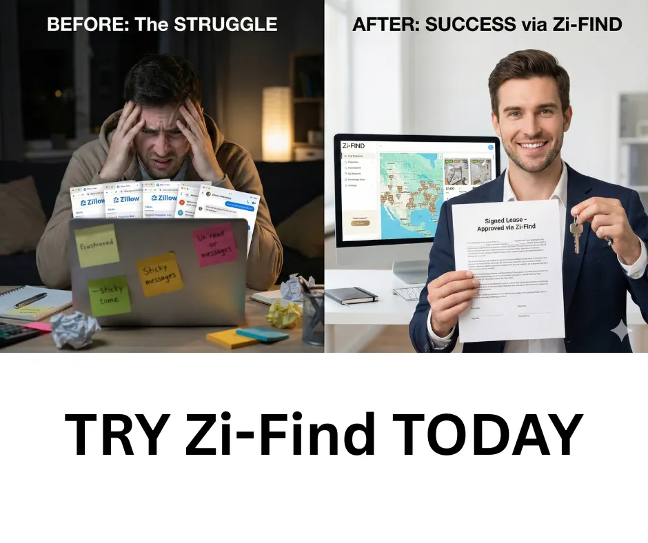 The information presented on this site is for informational and educational purposes only and should not be considered legal, financial, or real estate advice. Zi-Find is a software platform and marketplace that connects users with property opportunities; it does not act as a licensed brokerage, legal representative, or financial advisor. While we aim to provide accurate and up-to-date content, all leasing decisions and transactions are the sole responsibility of the user. Platform features, availability, and results may vary. Always conduct your own due diligence and consult with a qualified professional before entering into any lease or investment agreement. Any references to earnings, approvals, or outcomes are illustrative and not guaranteed.© 2025 All Rights Reserved.